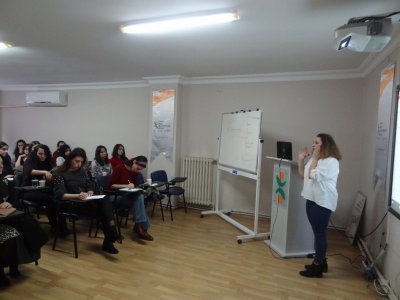 İstanbul Şube Yönetim Kurulu Üyemiz Sn. Berivan ATA, seminerin eğitmenliğini üstlenen Sn. Alev KOÇ‘a şubemize ve üyelerimize katkılarından dolayı teşekkür belgesi takdim etmiştir.