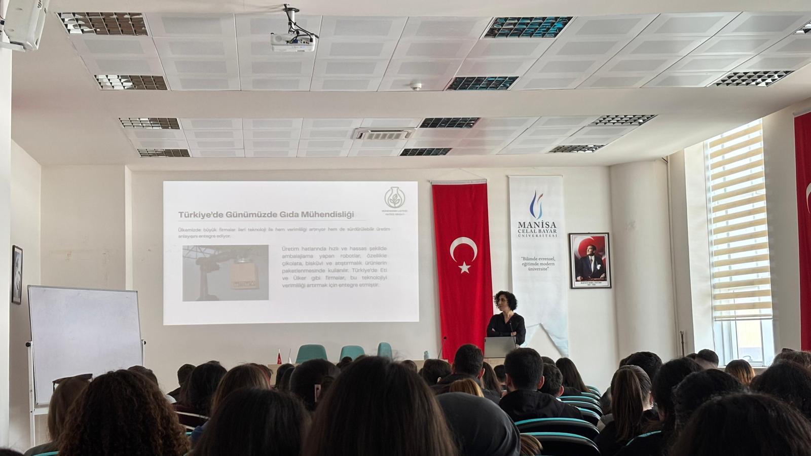 24 Mart 2026 Salı günü Manisa Celal Bayar Üniversitesi Gıda Mühendisliği Bölüm Başkanlığının daveti ile "Gıda Mühendisliğinin Geleceği Sürdürülebilirlik" başlıklı bir seminer verdik. Yönetim Kurulu Yedek Üyemiz Hatice NİKBAY'ın verdiği seminerde mesleğimizi geçmişten geleceğe durumunu, sürdürülebilirlik özelinde mesleğimizi anlattık, soruları yanıtladık.