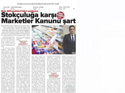 STOKÇULUĞA KARŞI MARKETLER KANUNU ŞART ANADOLU`DA BUGÜN GAZETESİ 20 MAYIS 2022