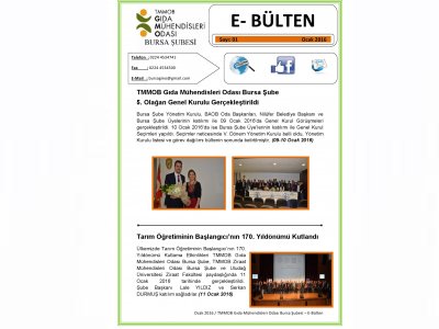 TMMOB Gıda Mühendisleri Odası Bursa Şubesi, E-Bülten Ocak 2016 sayısı ekte yer almaktadır.