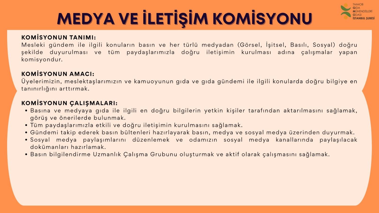 🔹 Gıda alanında doğru bilgiyi kamuoyuna ulaştırmak ve toplumsal farkındalık yaratmak için: Medya ve İletişim Komisyonu’na