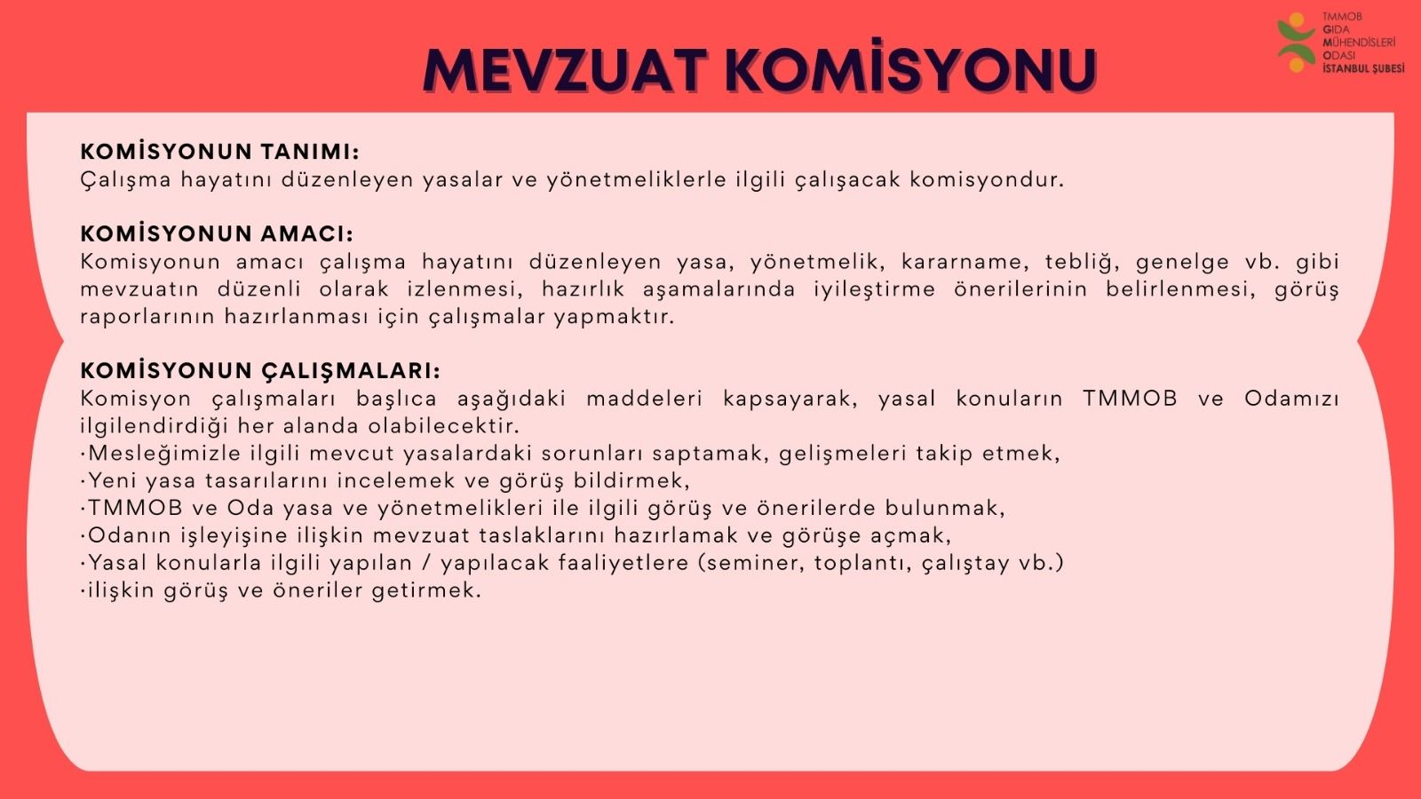 🔹 Meslek ve çalışma yaşamımızı düzenleyen mevzuat süreçlerinde söz ve yetki sahibi olmak için: Mevzuat Komisyonu’na Davetlisiniz.