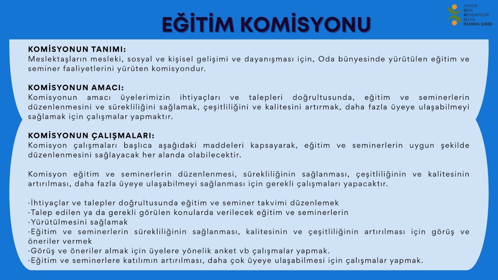 🔹 Mesleki bilgi birikimimizi geliştirmek ve meslektaş dayanışmasını büyütmek için: Eğitim Komisyonu’na