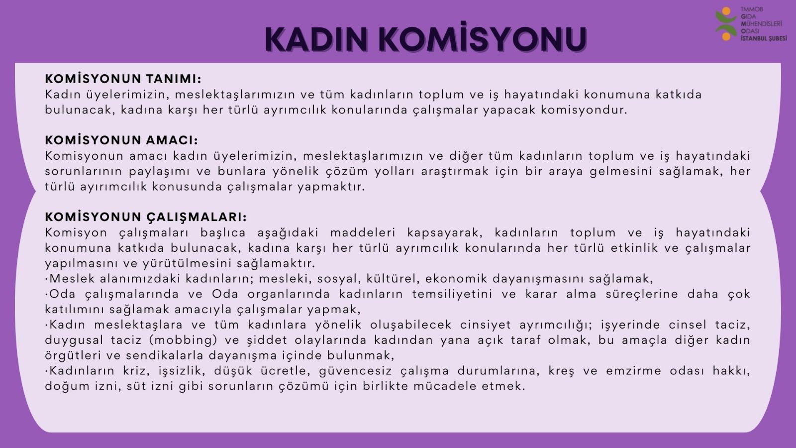 🔹 Toplumsal cinsiyet eşitsizliğine karşı eşit ve adil bir çalışma yaşamı için: Kadın Komisyonu’na
