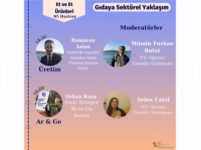 TMMOB Gıda Mühendisleri Odası İstanbul Öğrenci Temsilcilikleri tarafından 23 Mayıs -13 Haziran 2021 tarihlerinde Online olarak Gıdaya Sektörel Yaklaşım etkinliği gerçekleştirildi.