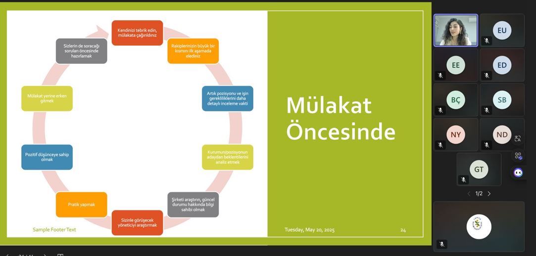 Programın moderatörlüğünü üstlenen Eğitim Komisyonu üyelerimiz Sinem İnkaya ve Elif Çulhacı’ya, etkinliğe katılım sağlayarak katkı sunan tüm öğrenci üyelerimize ve bu programın hayata geçmesinde emeği geçen herkese ve Eğitim Komisyonumuza teşekkür ederiz.