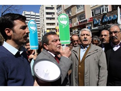 TMMOBnin Anayasa değişikliği referandumu konusunda almış olduğu Hayır kararını protesto bahanesi ile düzenlenen organizasyona meslektaşlarımızın demokratik tepkisi ile yanıt verildi. TMMOB tarafından herhangi bir çağrı yapılmamış olmasına rağmen provokasyon yapılacağı duyumu üzerine örgütüne sahip çıkmaya gelen mühendis, mimar ve şehir plancıları Birlik binamız önünde toplandı. TMMOB üyesi yüzlerce mühendis, mimar ve şehir plancısı, yukarıdan aldıkları talimatla hareket eden grubun gerçekleştirmek istediği provokasyona izin vermedi.