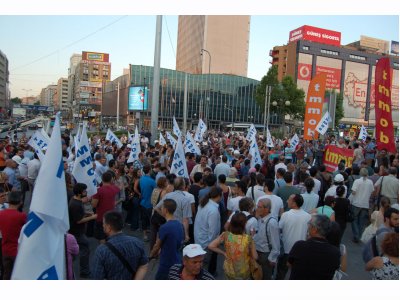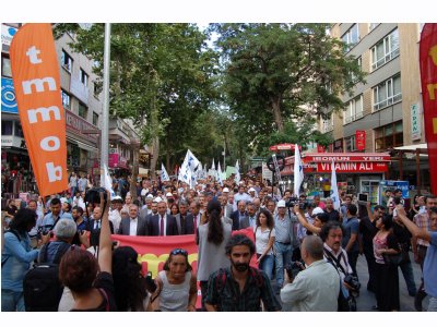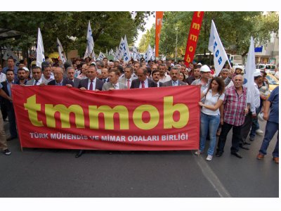 Mimar, mühendis ve şehir plancılarından oluşan TMMOB üyeleri, torba yasada gece yarısı bir önerge ile yapılan değişikliği, TMMOB‘nin asli görevi olan mesleki denetimi ortadan kaldırmaya yönelik düzenlemeyi ve İstanbul‘da TMMOB yöneticilerin gözaltına alınmasını protesto etmek üzere 10 Temmuz 2013 tarihinde TMMOB Genel Merkezi önünden, Çevre ve Şehircilik Bakanlığı‘na yürüdü. CHP milletvekillerinin de destek verdiği protestoda yöneticilerimiz ve üyelerimizle hazır bulunduk. Birlik Başkanımız Mehmet SOĞANCI tarafından basın açıklaması okundu ve Bakanlık kapısına siyah çelenk bırakıldı.