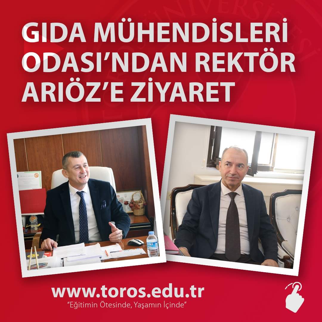 Yönetim Kurulu Başkanımız Yaşar Üzümcü, Mersin Şube Başakanımız Yusuf Değirmeci ile birlikte 21.02.2024 tarihinde Toros Üniversitesi Rektörü Prof Dr. Ömer Arıöz’ ü ziyaret ettiler. Ziyarette Meslek Yüksek Okulu Otel, Lokanta ve İkram Hizmetleri Bölüm Başkanı Öğr. Gör. Kamuran Öztop’ ta hazır bulundu. Toplantıda 6. Geleneksel Gıdalar Sempozyumun Mersin’de gerçekleştirilmesinde Toros Üniversitesinin Düzenleyici kuruluşlar arasında yer alması konusu görüşüldü. Sayın Rektör Prof Dr. Ömer Arıöz’e her konuda göstermiş olduğu destek ve nazik ev sahipliklerinden dolayı teşekkür ederiz.