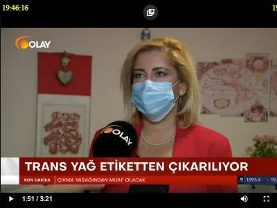 TMMOB Gıda Mühendisleri Odası İstanbul Şube Uzman Kurulu Üyemiz Gıda Mühendisi Ebru AKDAĞ, Tarım ve Orman Bakanlığının görüşe açtığı Türk Gıda Kodeksi Etiketleme ve Tüketicileri Bilgilendirme Yönetmeliğinde Değişiklik Yapılmasına Dair Yönetmelik taslağında, "Trans Yağ Yoktur" beyanının etiketten kaldırılması ile ilgili, 2020 Aralık ayında farklı medya kanallarının sorularını yanıtlamış, görüşlerini iletmiştir.