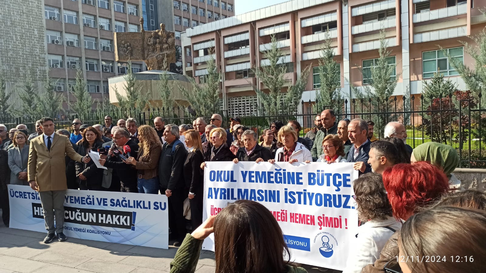 Türkiye Okul Yemeği Koalisyonu olarak aylardır ülkemizin her yerinde çocuklarımızın okul yemeği ve temiz su hakkı için mücadele yürütüyoruz. Bütçe takviminin başlamasıyla ve 14 Kasım’da eğitim bütçesi görüşmesinin yapılacağı tarihten önce siyasi iktidarı ve tüm kamu yöneticilerini kamusal sorumlulukları konusunda uyarmak, kamusal, yasal, anayasal ve uluslararası sözleşmelerden kaynaklı sorumluluklarının gereğini yapmaya çağrı için bugün buradayız.