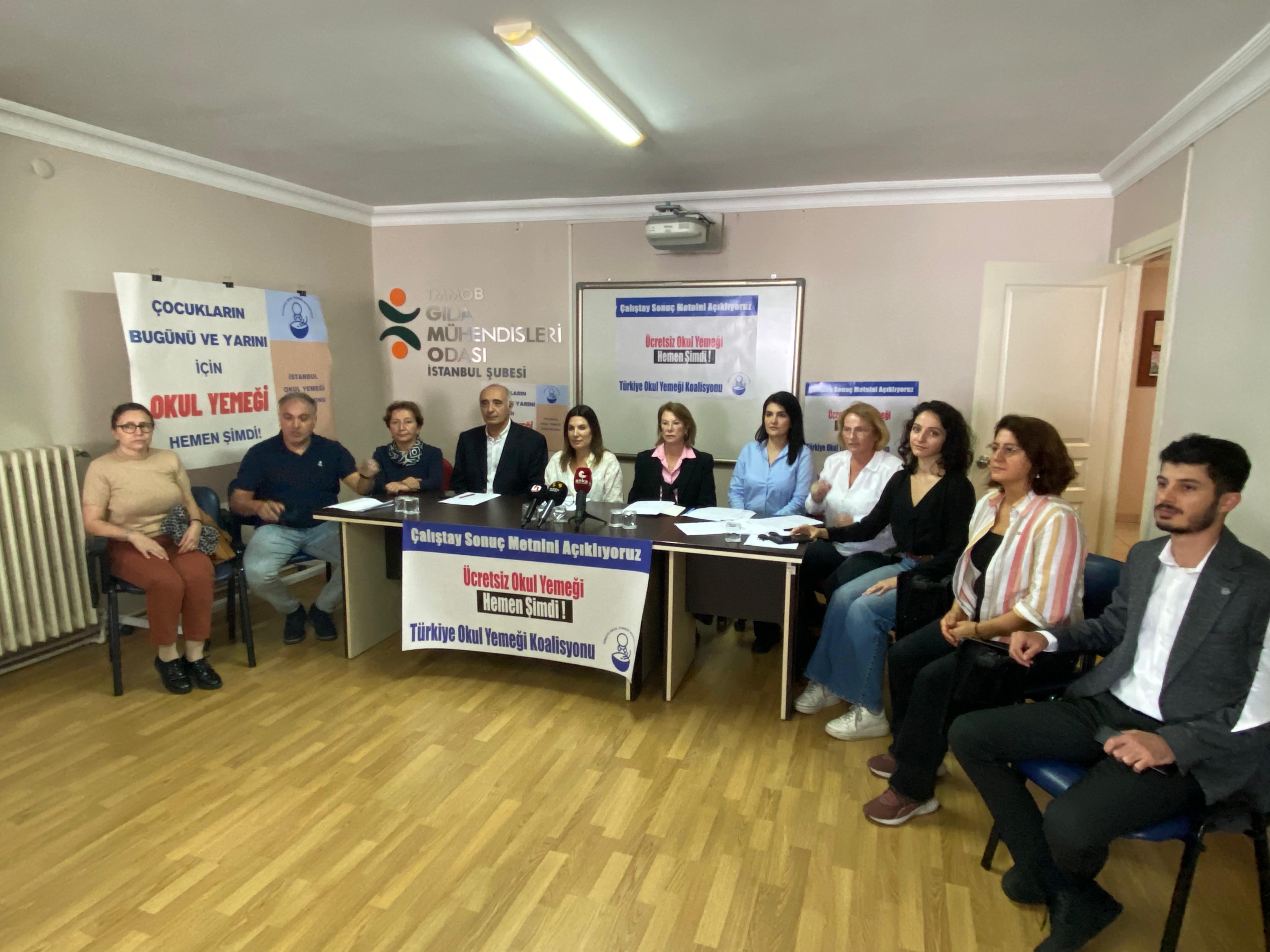 TMMOB GıdaMO İstanbul Şubesi olarak, kurucu üyesi ve bileşeni olduğumuz Türkiye Okul Yemeği Koalisyonu 20-21 Eylül 2024 tarihlerinde Ankara’da gerçekleştirdiği "Ücretsiz Okul Yemeği Hemen Şimdi" konulu çalıştayın sonuç bildirgesini 16 Ekim 2024 tarihinde şubemizin ev sahipliğinde düzenlenen basın toplantısı ile kamuoyuyla paylaştı.