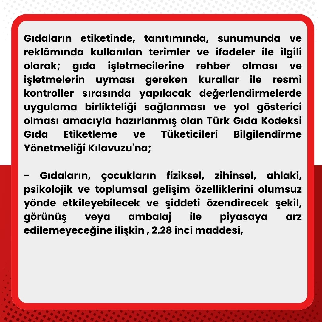 🔹 Gıdalar, çocukların fiziksel, zihinsel, ahlaki, psikolojik ve toplumsal gelişim özelliklerini olumsuz yönde etkileyebilecek ve şiddeti özendirecek şekil, görünüş veya ambalaj ile piyasaya arz edilemeyecek.