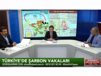 Ulusal TV‘ de 15 Eylül 2018 Cumartesi akşamı canlı yayınlanan, Sn. Osman GÜDÜ‘nün hazırlayıp sunduğu "Kent ve Yaşam" programına katılan Şube Başkanımız Sn. Zafer ŞENYURT ve Veteriner Hekimler Odası İstanbul Şube Başkanı Prof.Dr. Murat Arslan, Türkiye‘de Şarbon ve Gıda Güvenliği hakkında konuşmuştur.