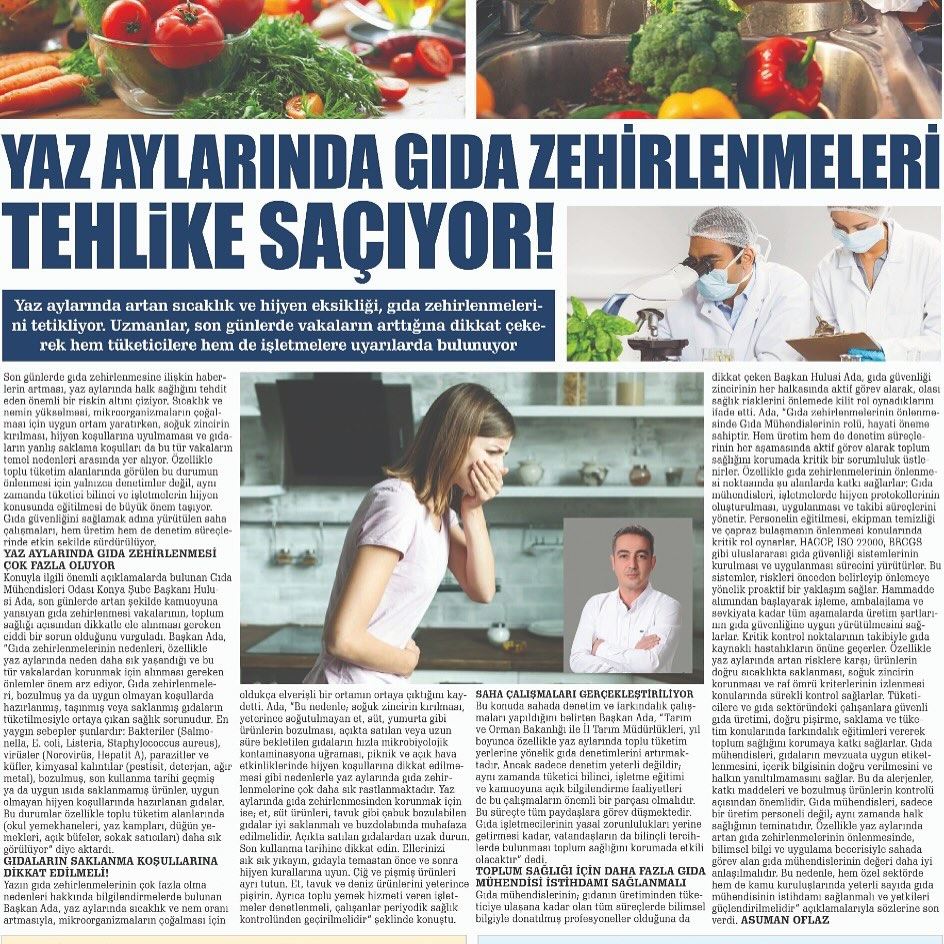 "YAZIN GIDA ZEHİRLENMELERİ TEHLİKE SAÇIYOR" KONYA'NIN SESİ GAZETESİ 24 TEMMUZ 2025