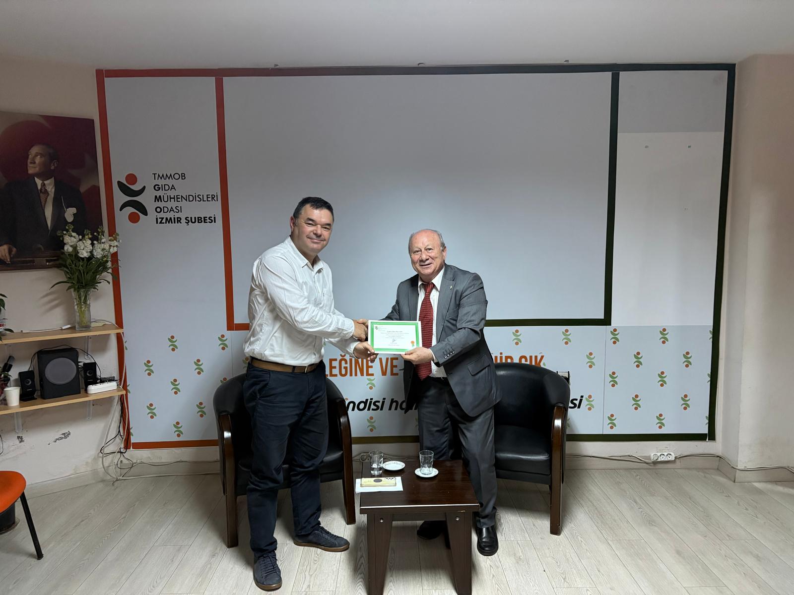 Şube Hizmet Binamızda gerçekleştirdiğimiz Teras Sohbetlerinin bu ayki konusu "Zehirsiz Sofralar" idi. 25 Mart 2026 Çarşamba günü gerçekleşen ve kolaylaştırıcılığını Yönetim Kurulu Üyemiz M. Zafer GÖYNÜGÜR'ün yaptığı etkinlikte, Ege İhracatçı Birlikleri Yönetim Kurulu Üyesi, Yüksek Ziraat Mühendisi Oğuz AŞÇIOĞLU, "Zehirsiz Sofra"nın anlamını, iyi üretim uygulamalarını, sorunları, günceldeki uygulamaları anlattı, gelen soruları yanıtladı. Sohbette Ekolojik Tarım Derneği Genel Başkanı Prof. Dr. Uygun AKSOY ve Ekolojik Tarım Derneği Genel, TMMOB Ziraat Mühendisleri Odası İzmir Şubesi Yönetim Kurulu Üyesi Özge DEMİR de dinleyicilerimiz arasında yer aldılar.
